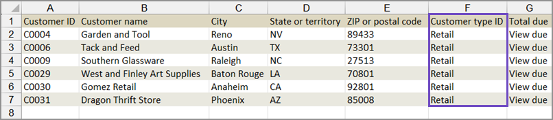 In the exported file, update the Customer type IDcolumn with the appropriate information for each customer.
