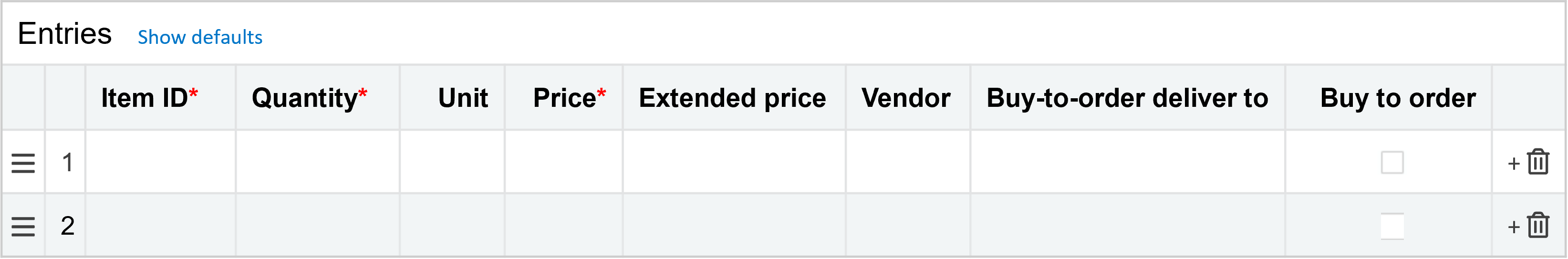 The following optional customizations can help simplify your buy-to-order workflow: