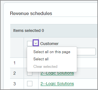 We expanded the selection options on the Manage Schedules page allowing you to select large numbers of rows efficiently. Now you can use the arrow next to the checkbox in the table header to perform the following actions:
