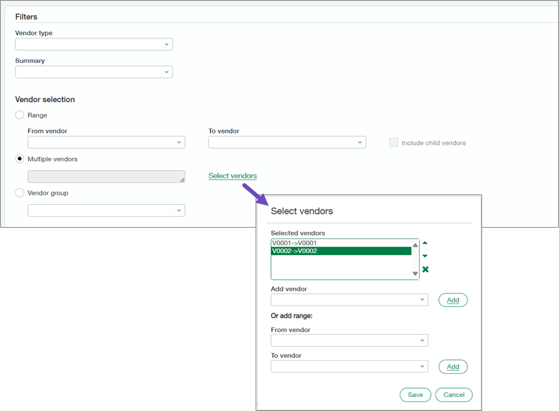 Enjoy more filtering flexibility in the AP Ledger report. New filtering options help you refine your report data to target specific suppliers.
