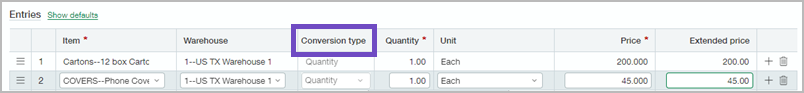- Convert transactions by price: Enables the ability to convert line items by price for non-inventory items.