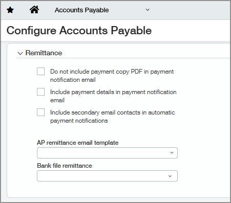 You can now configure Accounts Payable with dedicated options for bank file remittance, separate from traditional check remittance.