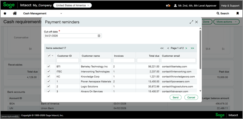 Cash requirements now includes one-touch customer payment reminders—Early Adopter